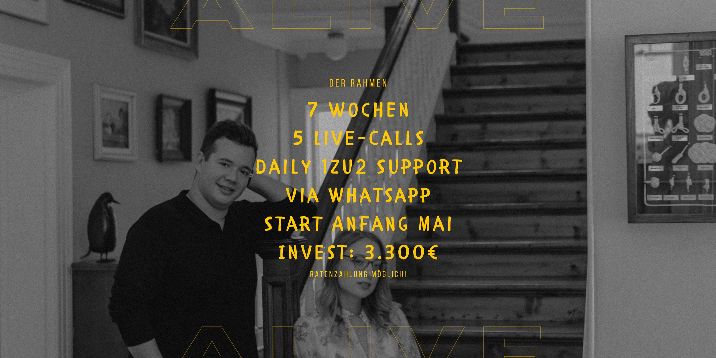 Dann buche Dir hier einen Call mit uns - und wir schauen gemeinsam, ob wir beide matchen und ob “ALIVE” gerade der nächste beste Schritt für Dich ist.