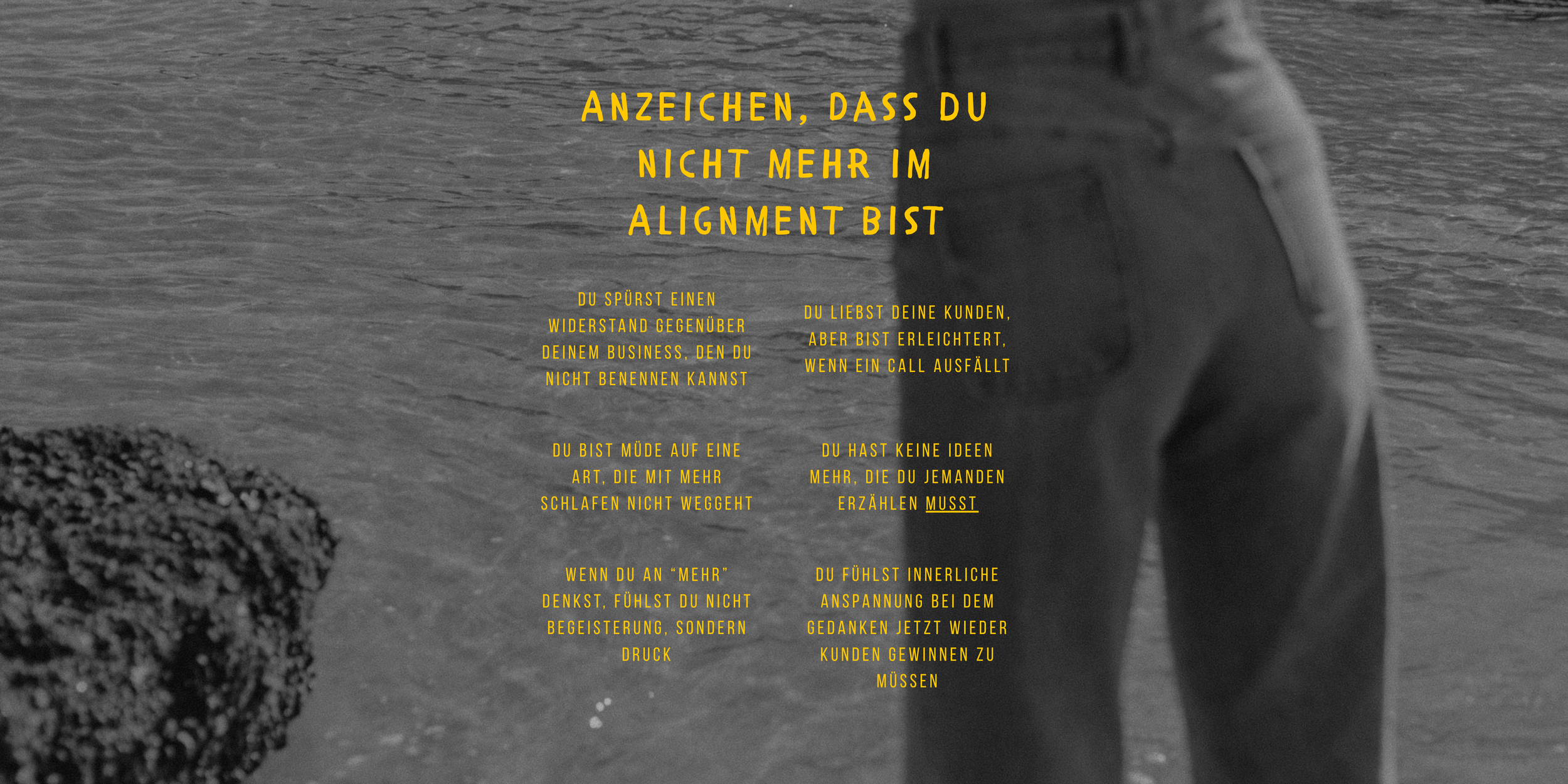 Denn Dein Problem ist nicht fehlende Disziplin oder Dankbarkeit. Dein Problem ist, dass Dein Business nicht mehr im Alignment mit Dir ist.